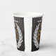 Elegant Wedding Anniversary paper cups with a diamond laurel pattern and a gold nugget number.