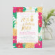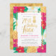 Tropical gold 70th birthday luau invitations with fun, pretty tropical flowers and pineapples, with gold accents. Perfect for a luau themed fiftieth birthday bash!