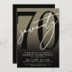 Celebrate seventy years in style with this modern faux gold to black gradient 70th birthday party invitation. The design features a large black “70” across most of the card with a white handwritten script “Seventy” layered over it for a bold, contemporary touch. The gradient background brings a sleek, upscale feel while keeping the layout minimal and striking. Party details sit at the bottom in a clean sans serif font, creating a simple layout that’s easy to read and works well for both men and women. All background and font colors can be customized to match your celebration’s vibe. Available as a printed invitation or a digital file you can share by email or print at home or through a local printer.