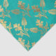 Gold Abstract Flowers on Turquoise Decoupage Tissue Paper