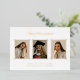 This retro-inspired graduation announcement card offers a unique and elegant way to celebrate your graduate’s achievement. The front features three carefully arranged photos, each framed with vintage-style photo corners, all in real gold foil, adding a touch of luxury and sophistication. The graduate’s name, school, and graduation year are also printed in gleaming gold foil, giving the card a timeless and stylish finish. Perfectly blending modern design with a classic touch, this card makes a memorable statement for any graduate.