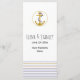 Gold, navy anchor and stripes nautical wedding menu card. This elegant and modern beach wedding design features horizontal stripes in navy blue and gold that cover the bottom of it and a gold glitter anchor in a white circle with gold outline on the upper.