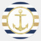 Nautical Gold Anchor Navy Stripes Envelope Seal Stickers.