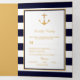 Gold Anchor Navy Blue & White Stripe Wedding Suite Tri-Fold Invitation