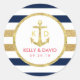 Gold Anchor Navy Stripes Nautical Wedding Favour Classic Round Sticker