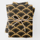 Gold and Black Art Deco Fan Flower Pattern Wrapping Paper Sheet