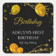 "Gold and Black Baby First Birthday" Square Sticker