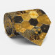 Elegant tie with a Japanese chiyogami-style pattern of gold and black honeycomb.