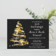 This elegant and chic holiday gift exchange invitation features a gold and black ribbon Christmas tree with presents. The text combines handwritten script and modern sans serif fonts for a classy and sophisticated look. The falling snow, glitter and sparkles give a festive and magical touch.