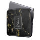 Gold and Black Marble Elegant Monogram Laptop Sleeve