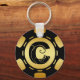 GOLD AND BLACK MONOGRAM LETTER C POKER CHIP KEY RING