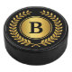 Gold and Black Monogram with Laurel Wreath Hockey Puck
