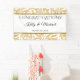 An Elegant Gold and and Black Wedding hanging banner designed with stylish gold coloured trim on a white background, with text: Congratulations!, The Bride and Grooms' First Names and Wedding Date. To personalise, simply insert your text into our easy template, replacing the sample text. Be sure to view the entire Gold and Black Elegant Style Wedding Collection.