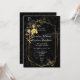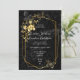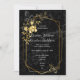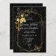 Floral cover, frame with gold line pattern decorated with jewelled, gorgeous, golden and black orchids with black and gold pistachio sprigs on black textured background. Design with gold and black orchids.