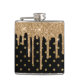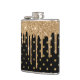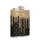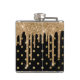 Glitzy drinking flask, with graphics of gold glittery paint dripping down a black and gold polka dot background. Customise to add your own text. Great gift idea for weddings, birthdays and other special occasions.