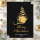 Gold and Black Ribbon Gift Merry Christmas Holiday Card