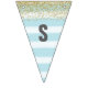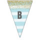 Banner with "bridal shower" wordings, faux gold glitter design and blue stripes pattern background.