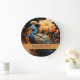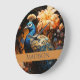 Gold and Blue Custom Name Pretty Peacock Large Clock