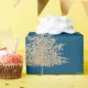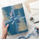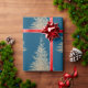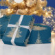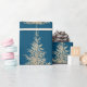 A simple, elegant gold look evergreen winter print on a dark blue background.