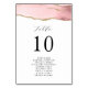 elegant blush and gold watercolor agate. Table number card seating chart with modern calligraphy.