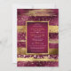 Gold and burgundy strokes and confetti wedding Invitation. This beautiful design features brush strokes in burgundy and gold and confetti. Your text is in a burgundy red frame with gold border. It is perfect for a fall or winter wedding.