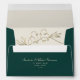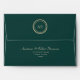 Elegant and modern emerald green wedding envelope, featuring a chic design with a return address, monogram at the top flap and a romantic love birds motif. Perfectly crafted for a luxurious touch, this envelope adds a sophisticated and personalised detail to your wedding invitations.