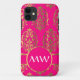 Gold and fuchsia pink damask pattern Case-Mate iPhone case