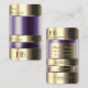 Make a lasting impression with this elegant and quality business card template featuring an eye catching gold can with glass and purple fluids optics. Matching the look of a faux 3D engraved font.