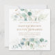 This square wedding invitation features painted watercolor eucalyptus, botanical green and gold glitter leaves with gold script.