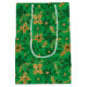 Gold and Green Christmas Poinsettia Flowers Medium Gift Bag