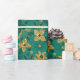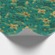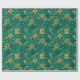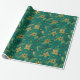 Gold and Green Christmas Poinsettia Flowers Wrapping Paper