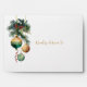 Elegant Christmas holiday envelopes feature a design of pine branches, green and gold Christmas ornaments and ribbons with your FREE return address on the back. MATCHING invitations and more items in our collection.