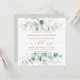 This square wedding invitation features painted watercolor eucalyptus, botanical green and gold glitter leaves with gold script.
