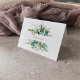 This gold and green eucalyptus bridesmaid thank you card is perfect for a simple wedding. The design features hand-painted watercolor green, gold, and blue leaves and flowers neatly arranged into bouquets and geometric elegant frames.