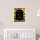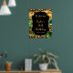 This gold and green safari themed agate birthday welcome sign features leopard spots, tiger stripes and snake scales. The text combines handwritten script and modern sans serif fonts for a classy and sophisticated look. The faux gold glitter accents and abstract animal print creates the perfect blend of chic and stylish.