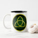 A gold triquetra on a green background against a black background (in several products). The triquetra is an ancient symbol dating back to pagan times and symbolises a trinity, though which trinity is a matter of debate: Father, Son, and Holy Ghost; the three stages of a woman (maiden, woman, and crone); the waxing, full, and waning moons; the poor, middle-class, and rich; and many others.