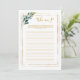 Gold And Greenery Who Am I Bridal Shower Game