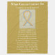 The poem words say "What Cancer Cannot Do, Cancer is so limited... It cannot cripple love. It cannot shatter hope. It cannot corrode faith. It cannot destroy peace. It cannot kill friendship. It cannot suppress memories. It cannot silence courage. It cannot invade the soul. It cannot steal eternal life. It cannot conquer the spirit. -Author Unknown"