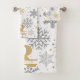Gold and Grey Snowflakes in White Background Bath Towel Set