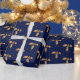 Gold and Navy Blue Christmas Holly Wrapping Paper