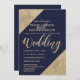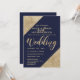 Gold and Navy Blue Faux Glitter Sequin Wedding Invitation