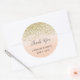 Thank you stickers with faux gold glitter design and ombre peach watercolor background.