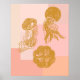 This wall art features hand-drawn gold jellyfish and a sea urchin layered over soft blush and peach color blocks for a modern coastal feel. The vintage-inspired linework adds texture while the warm palette keeps the look calm and contemporary. Ideal for beach houses, modern living rooms, or ocean-inspired spaces. A striking yet soothing statement piece for art-forward interiors.