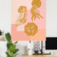 Gold and Pink Jellyfish Coastal Ocean Wall Art