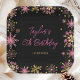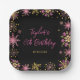 This elegant and glamourous plate features watercolor gold and pink faux glitter snowflakes and sparkles on a black background. The text combines handwritten script and modern sans serif fonts for a classy and sophisticated look. This is perfect for a winter or Christmas birthday party.