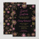 This elegant and glamourous invitation features watercolor gold and pink faux glitter snowflakes and sparkles on a black background. It is perfect for a winter or Christmas themed sweet sixteen birthday party.