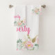 Gold and Pink Watercolor Flowers Shabby Chic Bath Towel Set