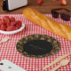 Gold and red Art Deco seamless pattern on a changeable black background.