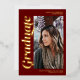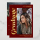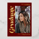 Modern and simple real gold foil and red burgundy graduate script open house photo graduation. Add 3 of your favourite photos with an elegant retro style font and photo grid collage