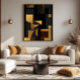 This abstract artwork is a dialogue between the luxury of gold and the depth of shadow. Precise geometries—rectangles, triangles, curves—intertwine like musical notes, creating a visual rhythm that invites the eye to explore each layer. Golden hues radiate sophistication, while intense blacks add drama, resulting in a piece that balances modernity and timelessness. Ideal for spaces seeking elegance without sacrificing personality.
